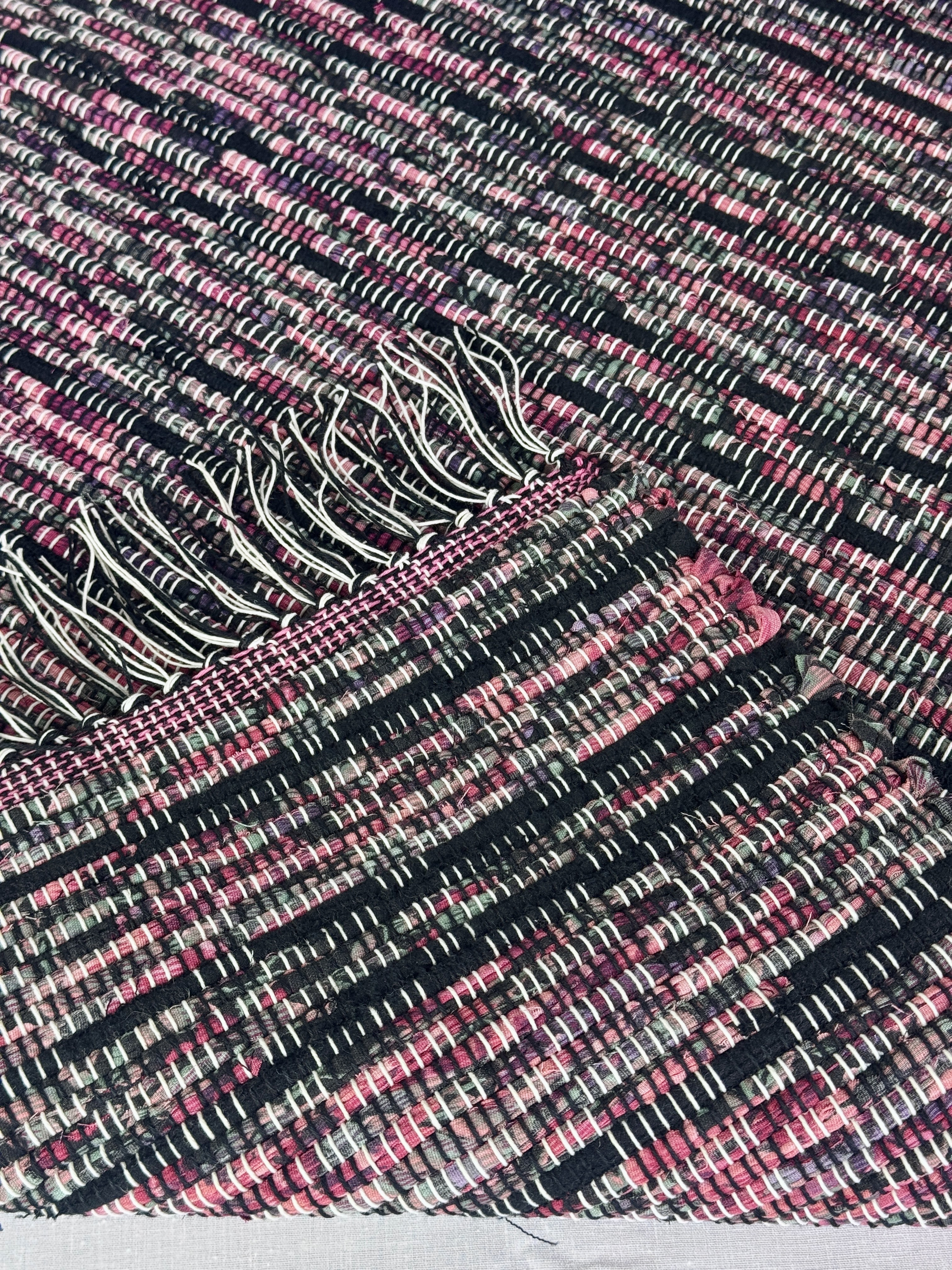 Every rug is meticulously handwoven on my trusty two-harness loom. I pour my passion and attention to detail into each weave, ensuring a quality that transcends trends. The impeccable straight edges and tightly woven strands are testaments to my dedication, while the variety of warp colors allows me to create pieces that complement any aesthetic, from modern minimalism to vintage charm.