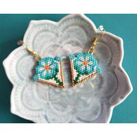 After sketching a design and coming up with a color palette each component of the earrings is carefully molded and placed. After the earrings are baked and are no longer soft, the back is then painted with beautiful gold acrylic paint and left to dry. Finally, the paint is coated with a varnish to protect it from chipping and/or fading.