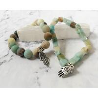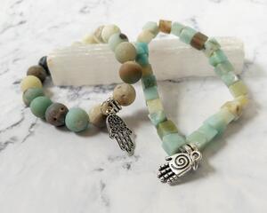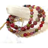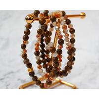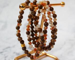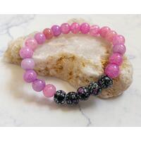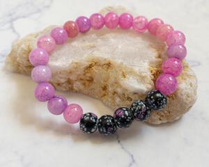 Three bracelet collection. 6mm pink howlite and natural stone.