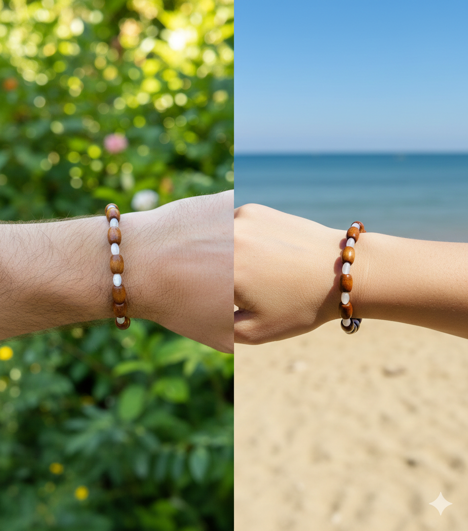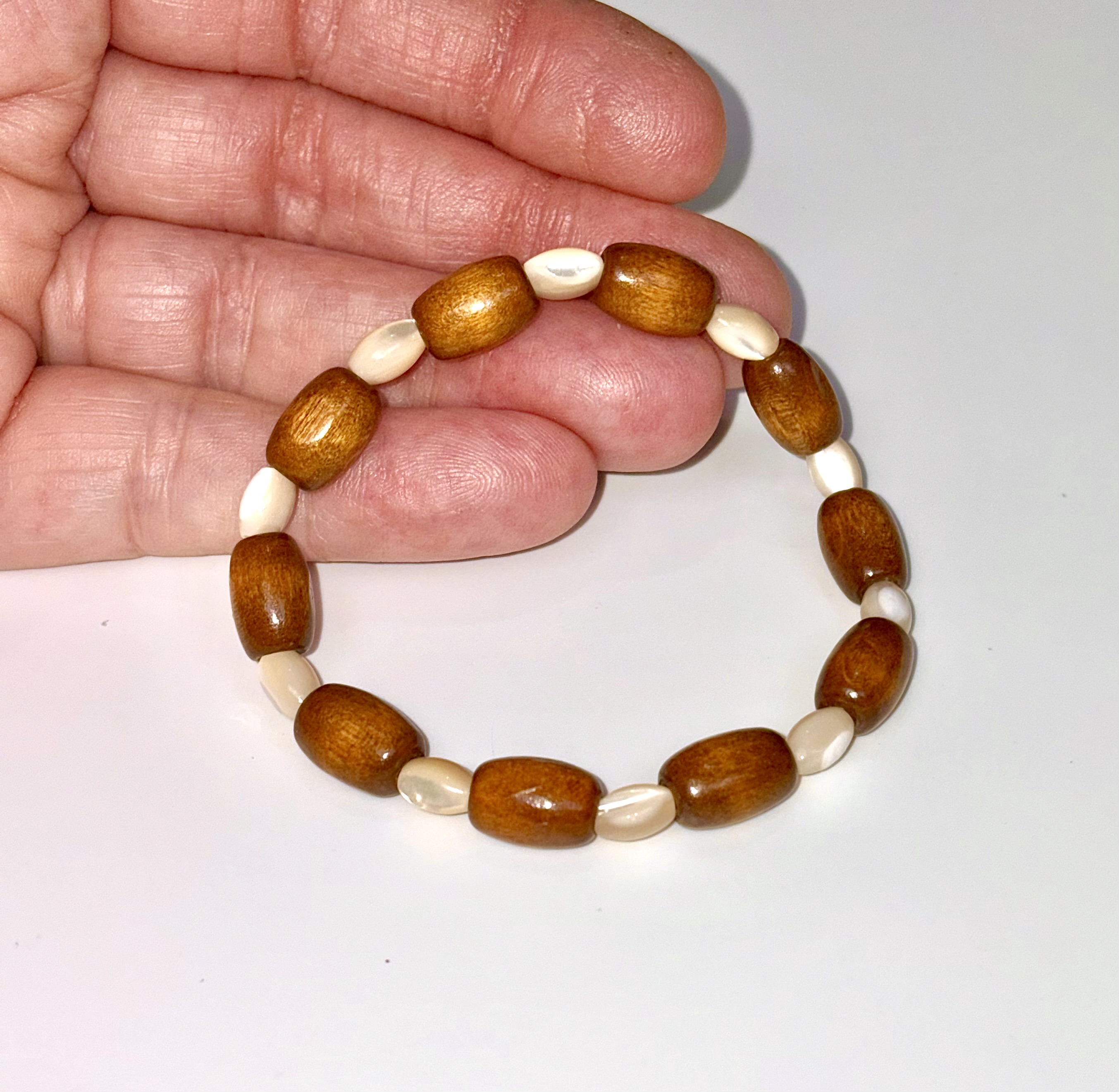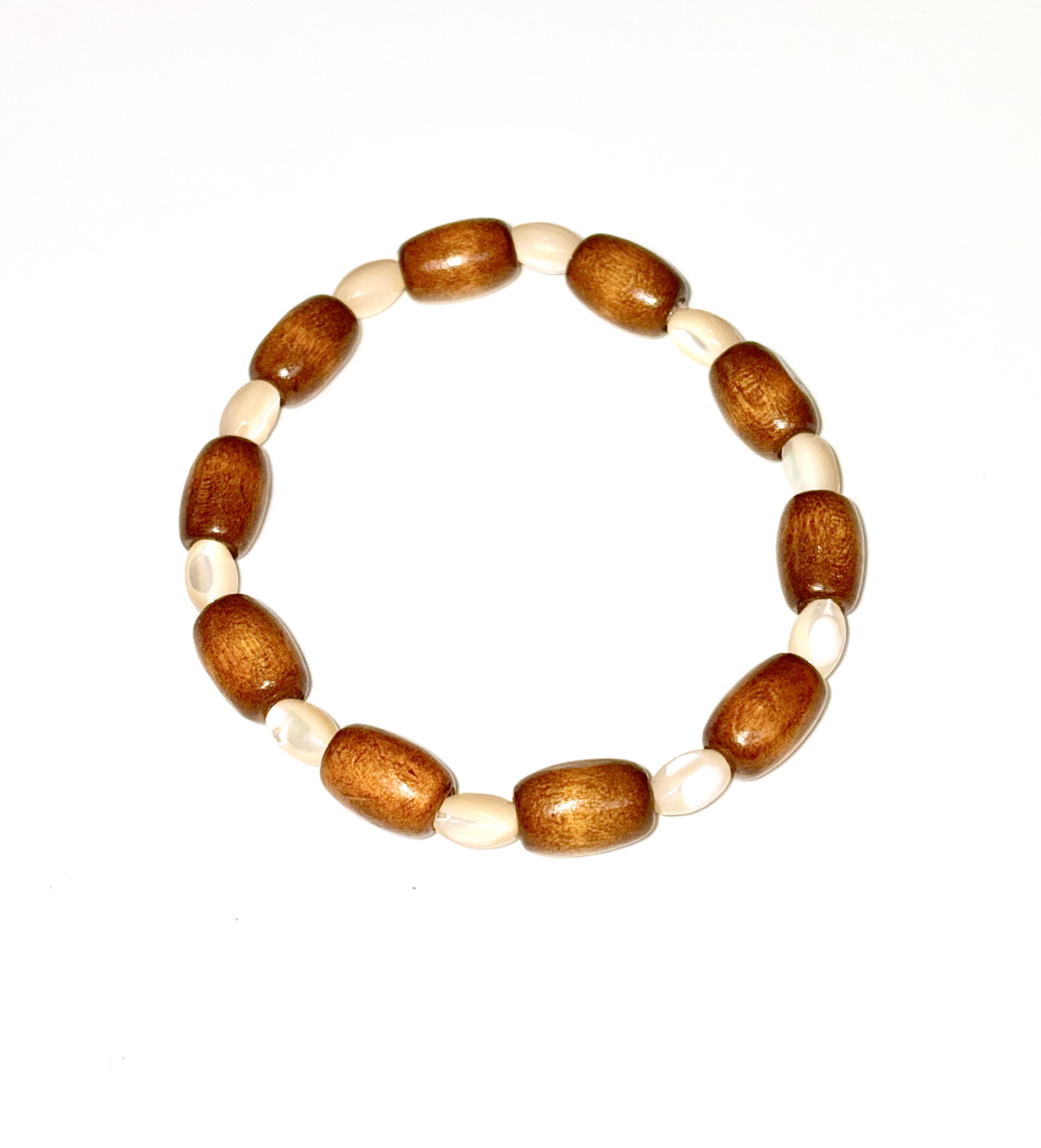 This handsome stretch bracelet is a perfect blend of rustic and simple elegance anyone can wear. It features alternating wood and shell beads for a balanced, earthy look.