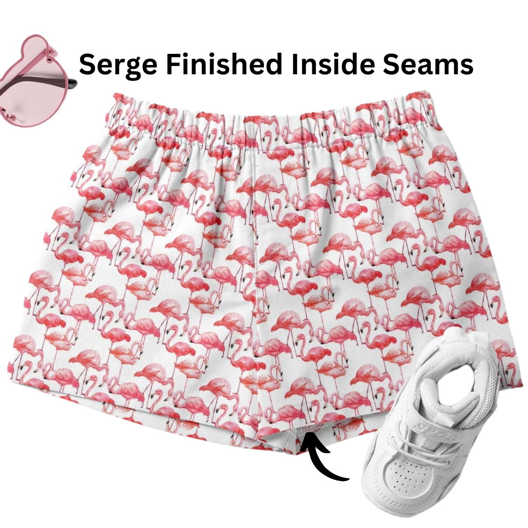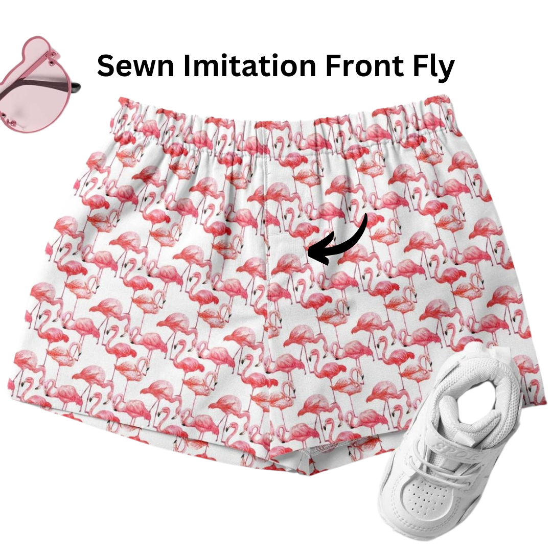 Bright, cheerful, and perfect for sunny days — these flamingo toddler shorts bring tropical vibes to every little girl’s wardrobe! Designed with an all-over pink flamingo print on soft white cotton, these shorts are lightweight, breathable, and oh-so-comfortable. The easy pull-on waistband makes dressing simple, while the playful print adds a touch of personality to every outfit.