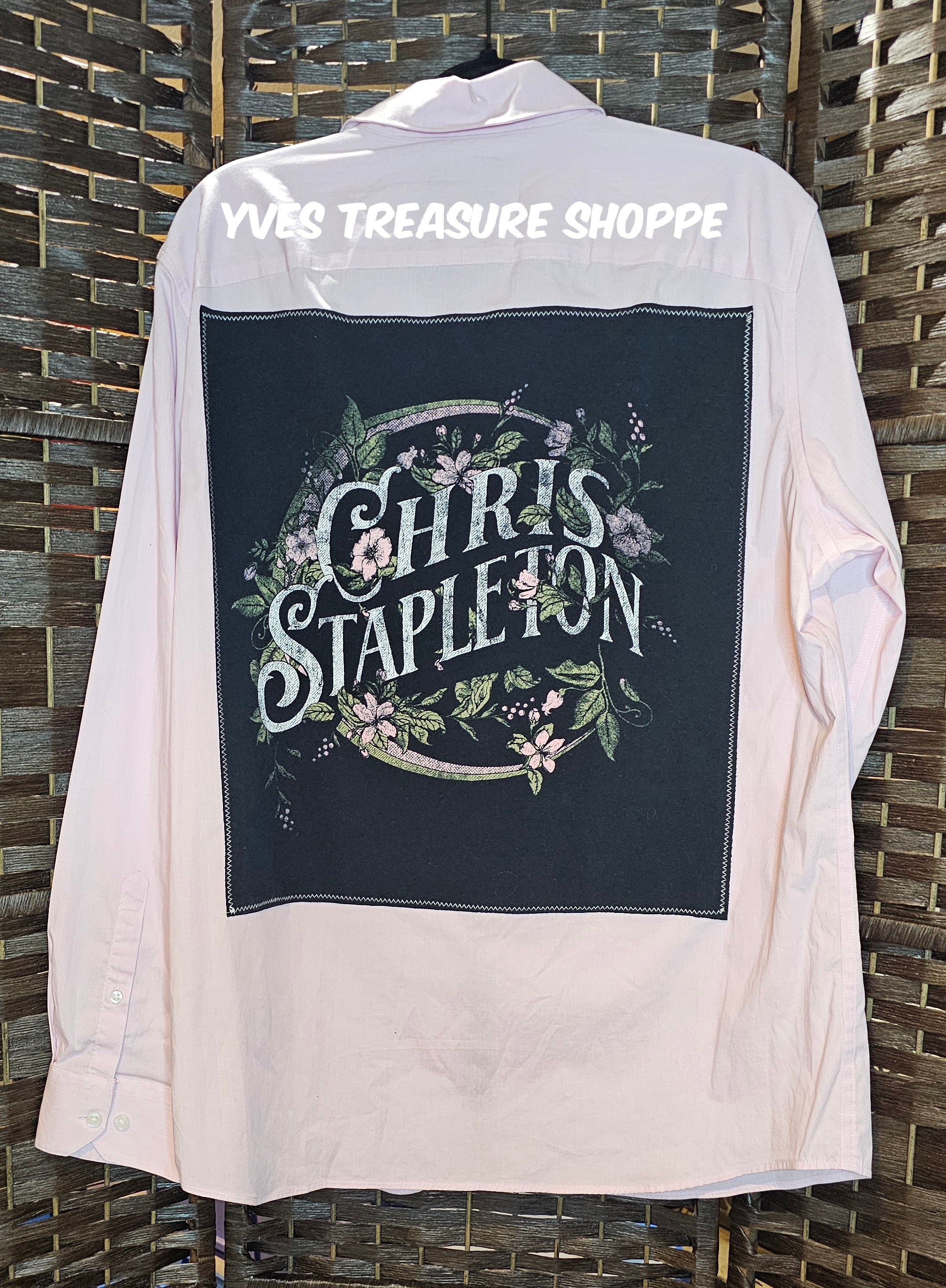 This is a new refashioned APT 9 Large Shirt. 25 inches across pit to pit. 31 inches long from top of shoulder to bottom of shirt. Embellished on back with a T-Shirt Panel.