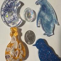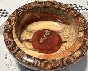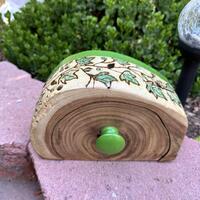 My woodworking consists of bowls, bandsaw boxes, intarsia items, pyrography and more. My resin items are trinket boxes, plaques, keepsake boxes, figurines and more. Some are made with a combination of wood and resin and some are made with Resincrete (a powdered resin product like plaster but stronger). I also enjoy making notebooks and journals.