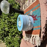 A beautiful little jar to hold your treasures in. The little lady bug has decided to make it her home and she would love to bring her home to yours. The jar was made in my mold from Resincrete. It measures approximately 3-1/2” x 4” and weighs about 14.3 oz.