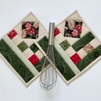 Just like the large quilts I make, these place mats are sewn from very small pieces of fabric. The middle layer of batting is polyester so these will keep their shape well after washing. All of the layers plus the backing are then quilted together. The binding is sewn on both front and back by machine for durability.