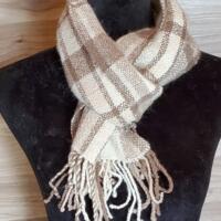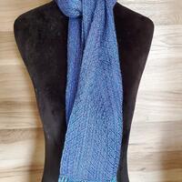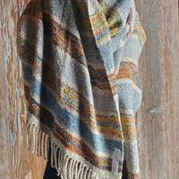 This scarf is made from handspun yarns I spun on my spinning wheel. The cashmere is from my own herd of cashmere goats, the silk from a roving I bought then spun. Woven on my rigid heddle loom. Many fun hours went into the making of this.