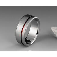 All of our rings are 100% handmade (without the use of computerized machinery) in our home studio in Northern California. They are suitable for both men and women. The width can be adjusted to suit your preference. If you would like your titanium ring engraved, we are pleased to offer engraving of up to 40 characters at no additional charge. Engraving is a perfect addition to any engagement ring, wedding ring, promise ring, anniversary present, or any other gift!