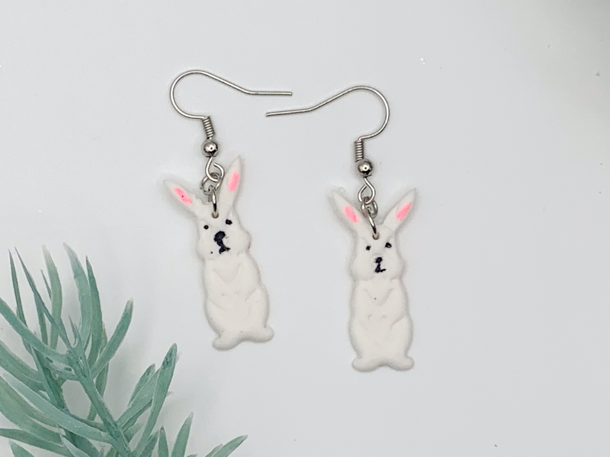 Hop into style! These adorable standing bunny earrings feature bright pink ear accents for a fun, cheerful vibe.