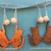 These playful cat earrings feature maple wood cats playing with handmade woven rattan straw round beads. Each one is unique and these 4 are the only ones that exist. I have 2 more beads left and can only make one more pair! The earring hooks, chains and jump rings are all stainless steel. The wood was sealed for protection.