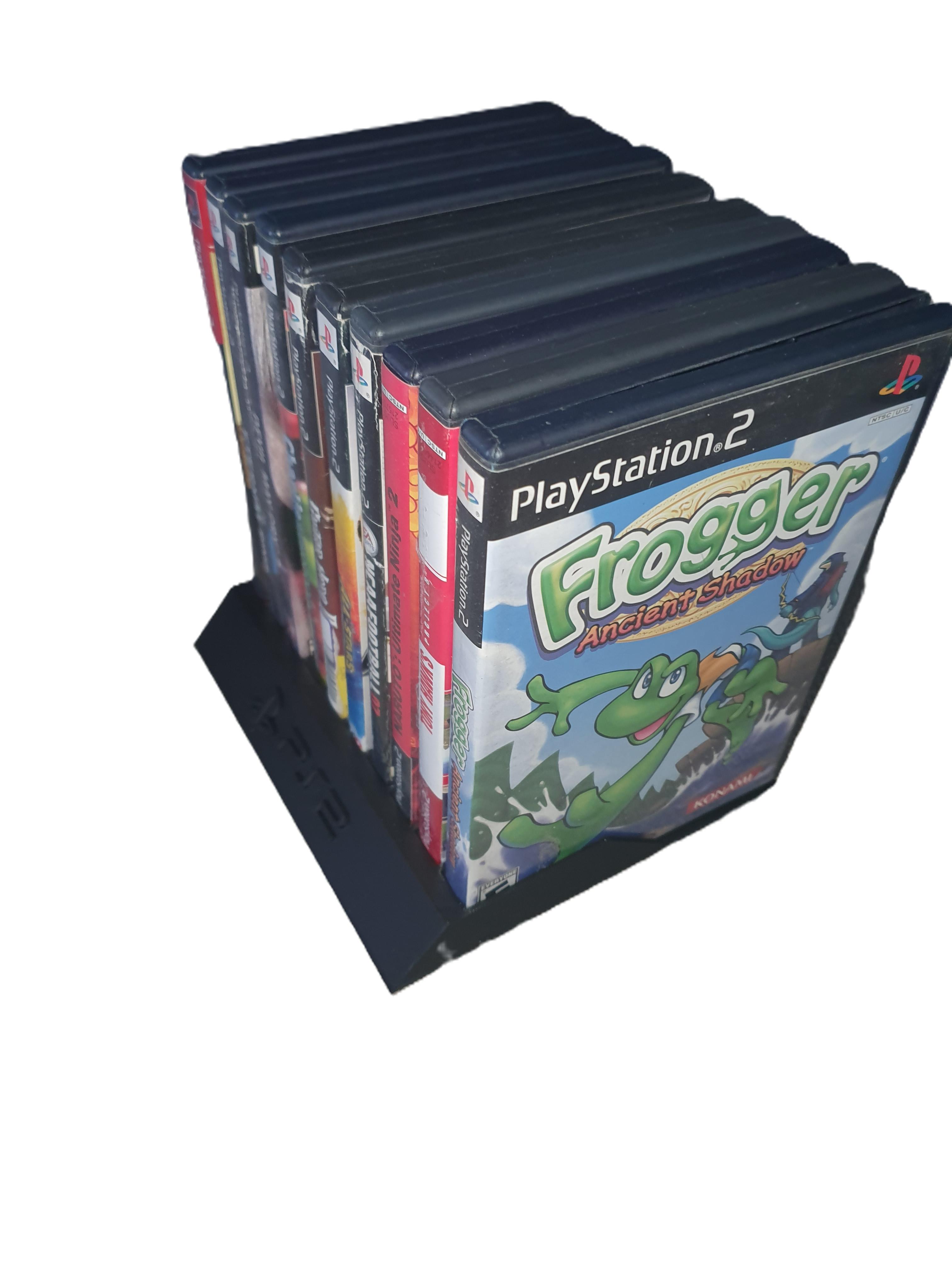 Description: This has been redesigned for better fitment compared to other and previous versions of this holder. Holds PS2 Sized games.