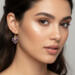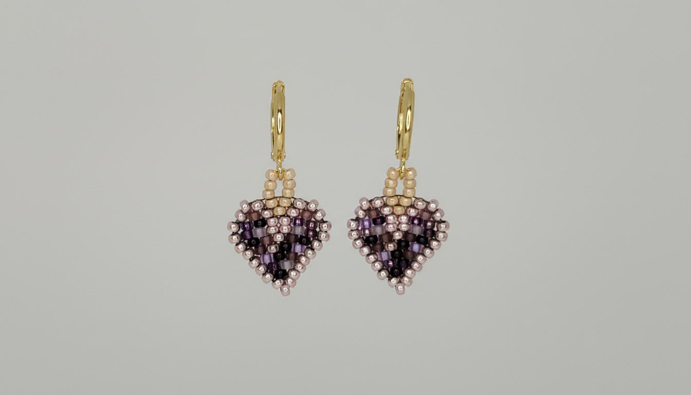 Plum Prism Heart Earrings feature a dimensional blend of plum, blush, green, bronze, and violet tones dispersed throughout the heart shape.