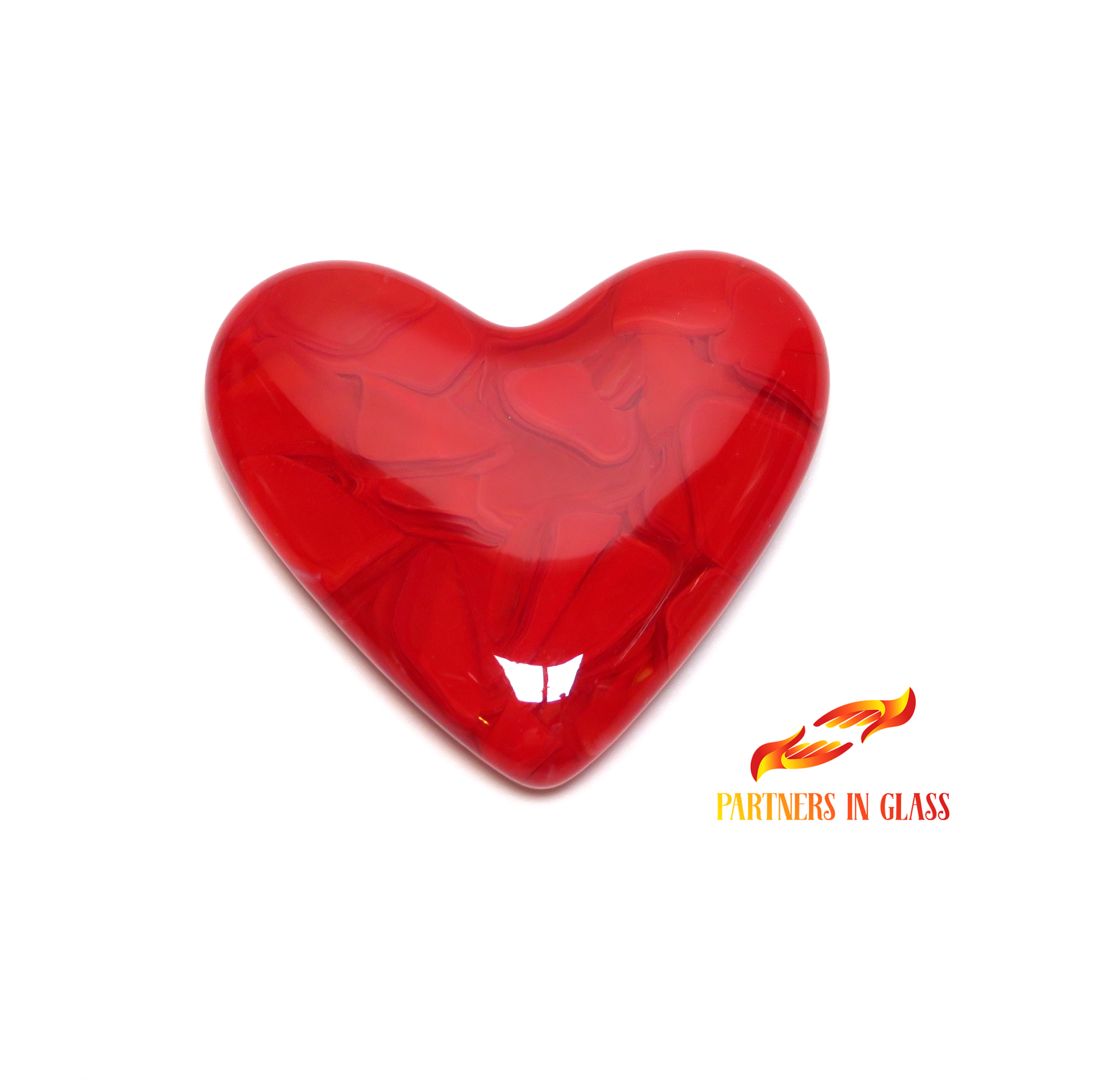 All hearts are original designs and carefully created and fired in our kiln for at least 10 hours to ensure the strength and durability of the glass. The front has a shiny finish and the back has a matte finish.