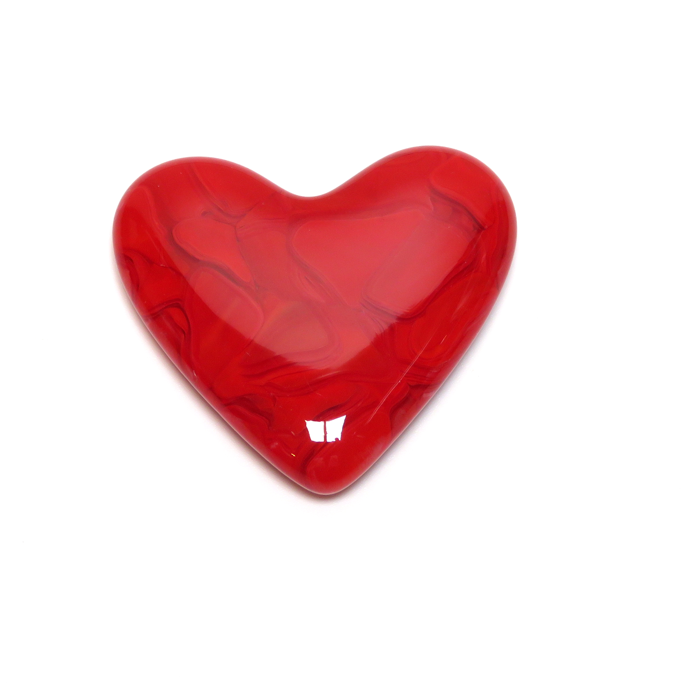 All hearts are original designs and carefully created and fired in our kiln for at least 10 hours to ensure the strength and durability of the glass. The front has a shiny finish and the back has a matte finish.