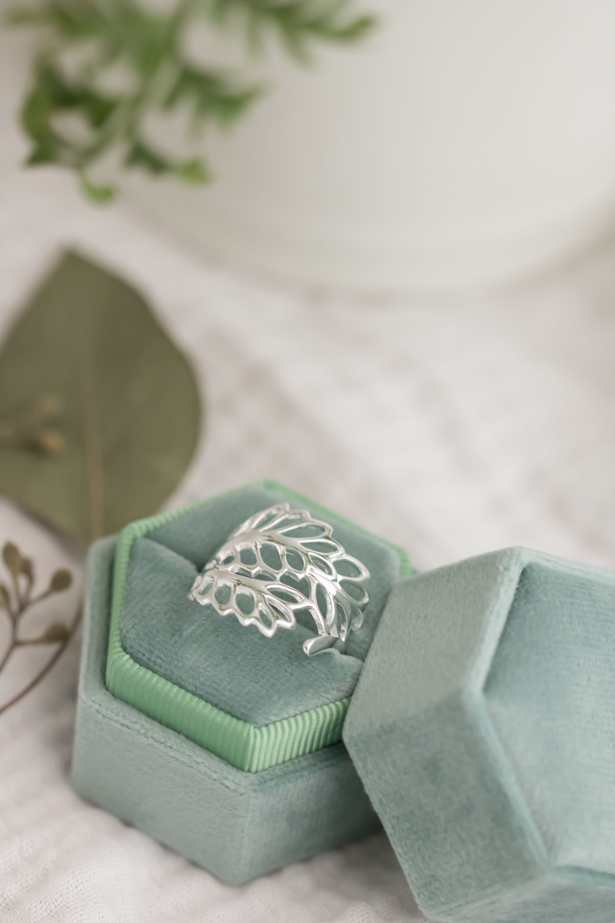 Psst—your finger’s throwing a twig-tastic bash! This 21mm sterling silver ring sprouts cheeky cutout leaves that shimmy and shine like gossiping saplings. Polished to a giggle-worthy gleam in .925 silver, it’s light, bright, and ready to leaf boredom behind. Slip it on and let your hand host the forest’s cutest rave!
