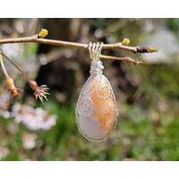 This simple, yet elegant crescent moon pendant is a great self care tool for those looking to also express their style. The polychrome Jasper in this jasper necklace transitions from a grayscale to a nice textured beige at the top. Wrapped in copper wire, this healing crystal necklace will catch the eyes of many around you.