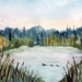 This is an original painting (NOT A PRINT OR COPY) titled "Pond Pals". The style is "atmospheric" with ducks swimming and birds flying across a serene wooded pond. This signed piece was painted by me on 140lb. Saunders Waterford 100% cotton watercolor paper using Daniel Smith professional watercolor paints.