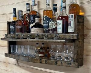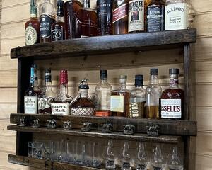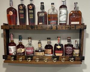 We have a number of bar shelves made from bourbon barrel staves, in all shapes and sizes, so if this shelf does not fit your needs, please click on this link to shop our other handmade products.https://goimagine.com/barrelworx/