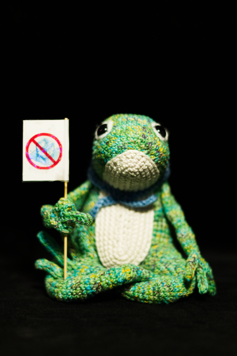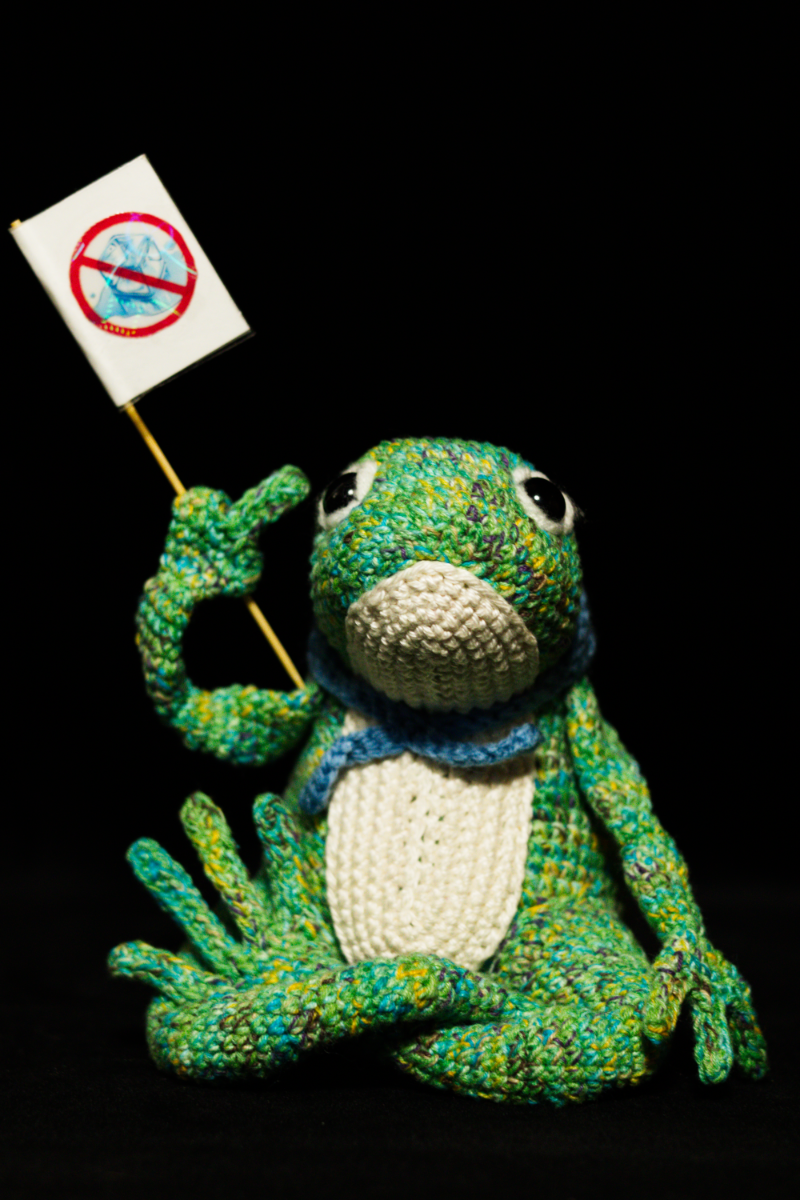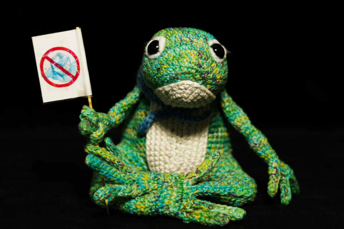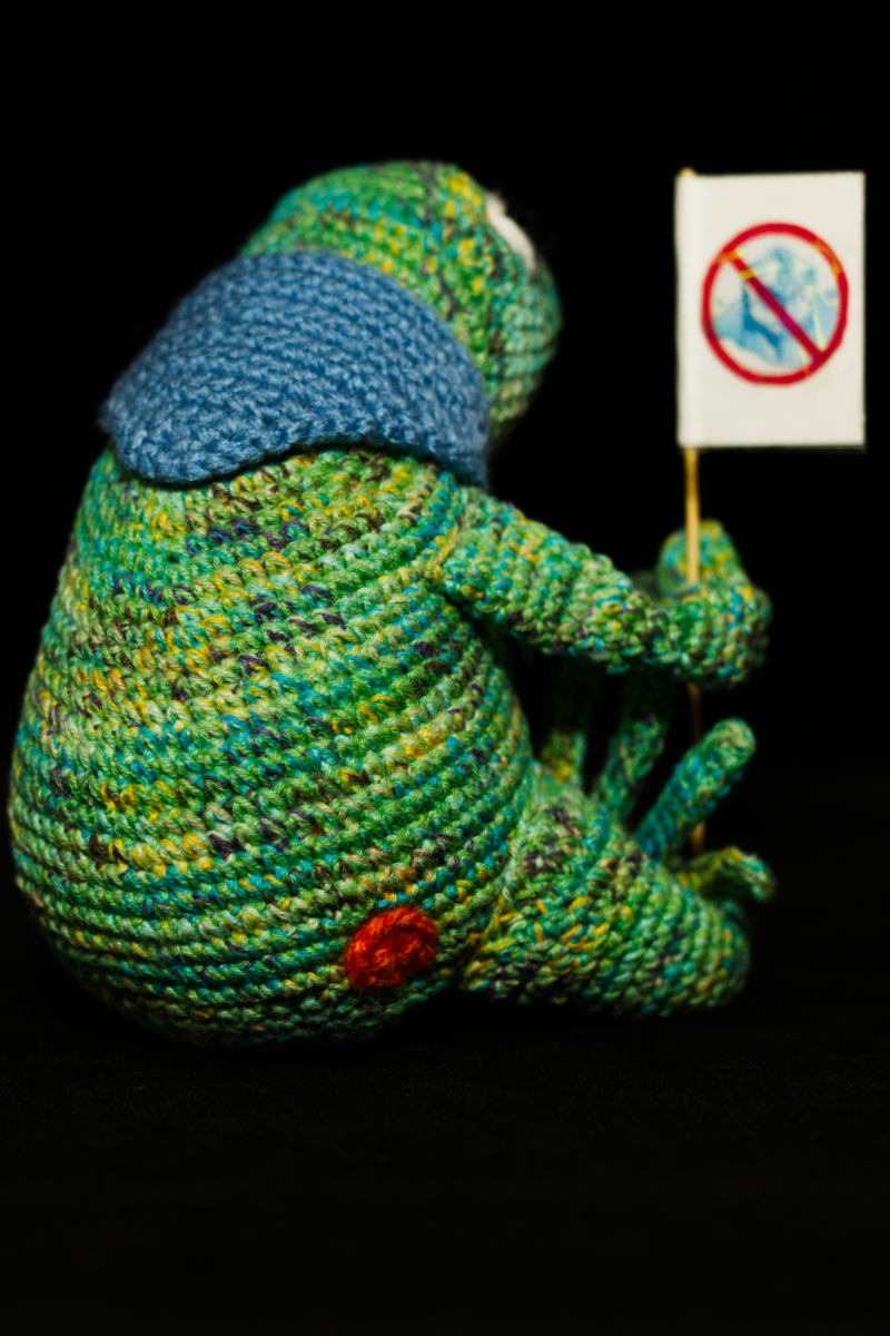 Created using the finest quality yarn, the Portland Resist Frogman features an intricately crocheted body that is soft to the touch. Its large, round, and adorable eyes seem to hold a hint of the secrets it has witnessed in the depths of the Oregon forests.