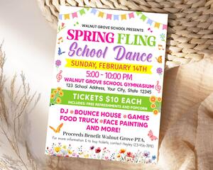 Editable Spring Fling Dance Flyer Invitation for School Event