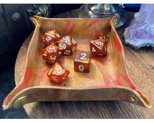 Hand-dyed Red and Tan Leather Dice Tray, Trinket Tray, for D&...
