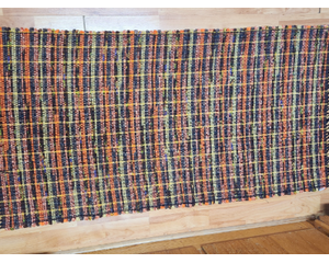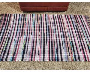 hand crafted rag rugs made with upcycled materials on the prairie