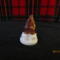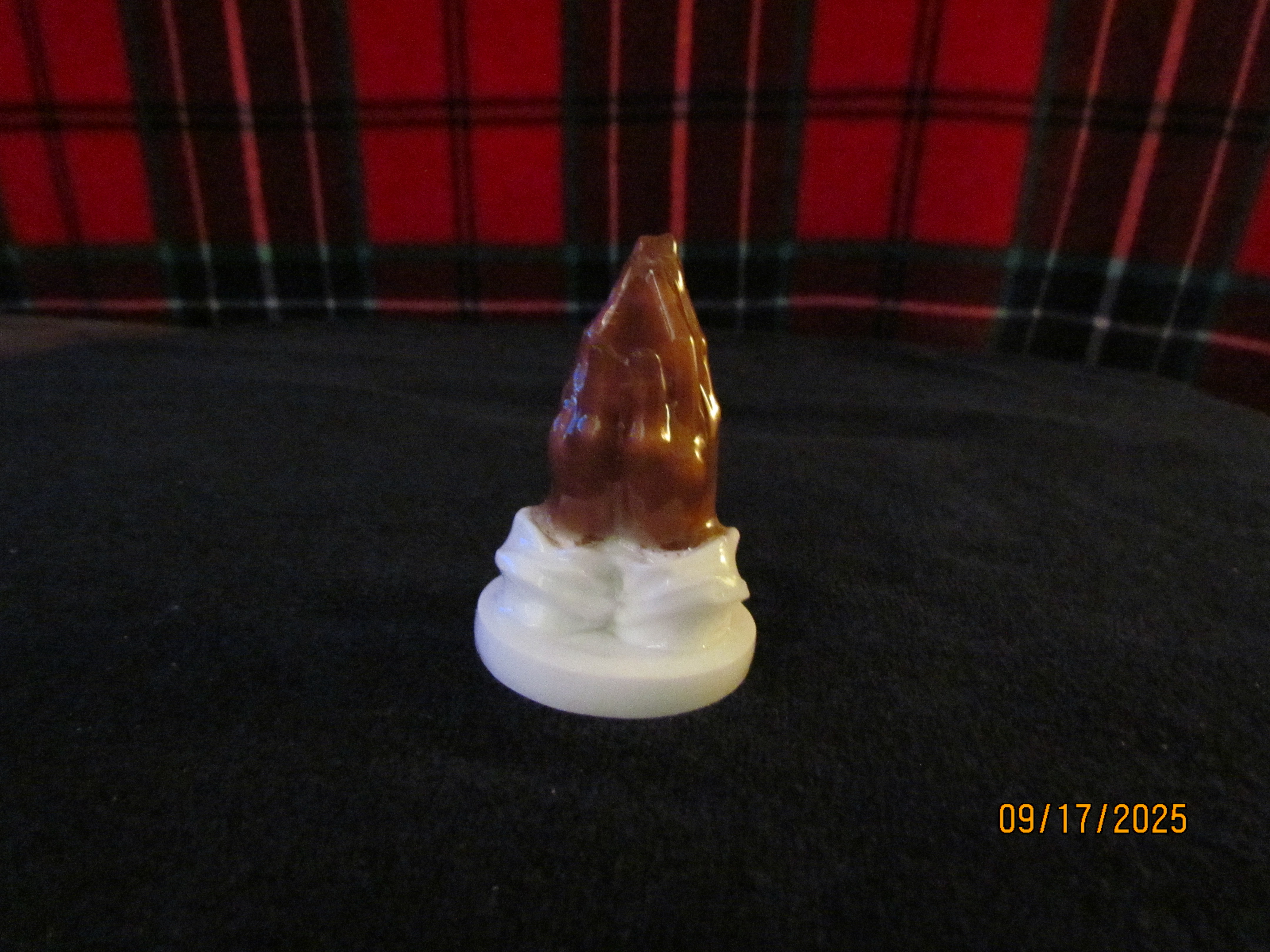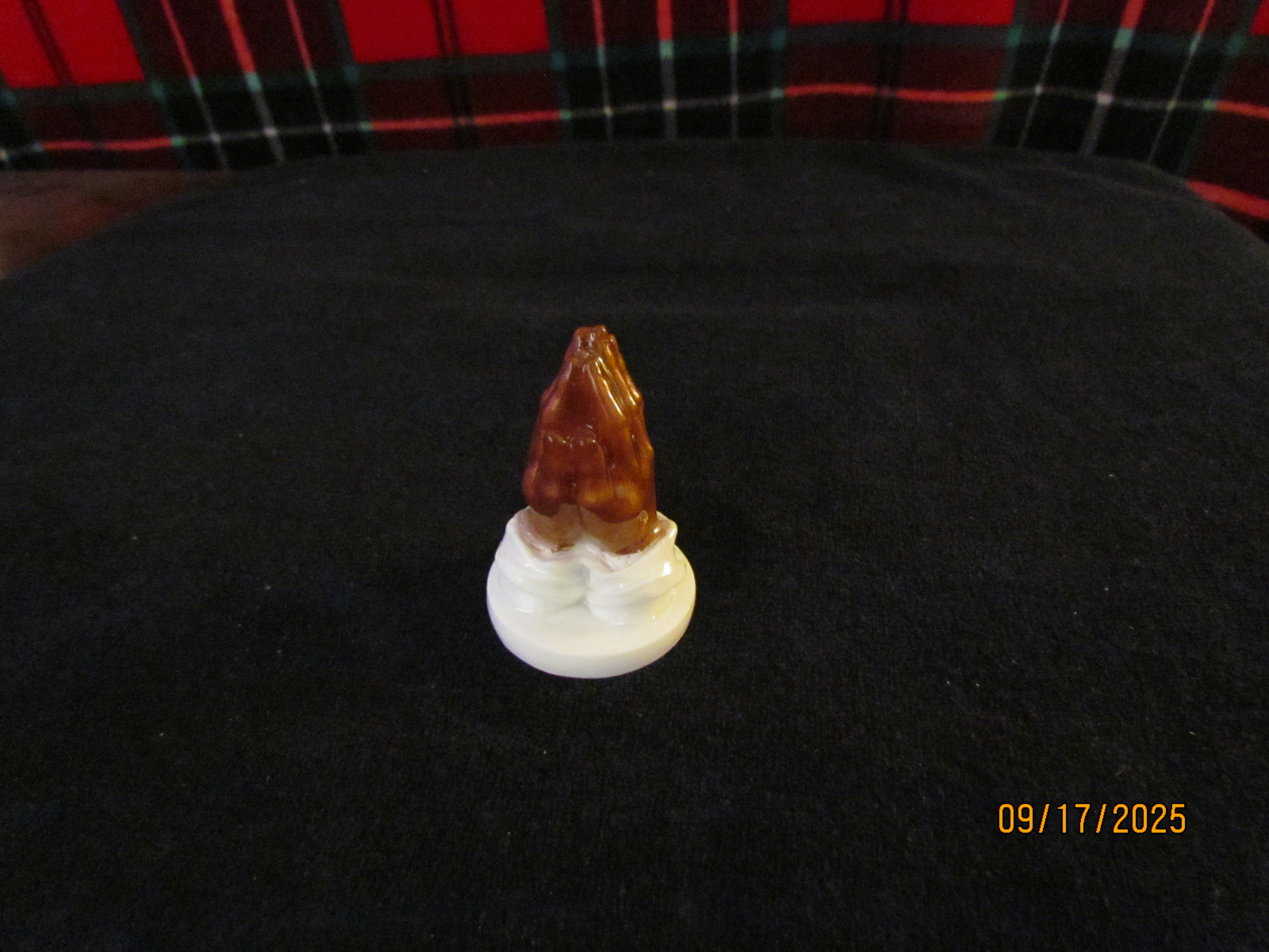 the hands are a brownish/copper color. it has a battery powered white light inside. the cuffs are white