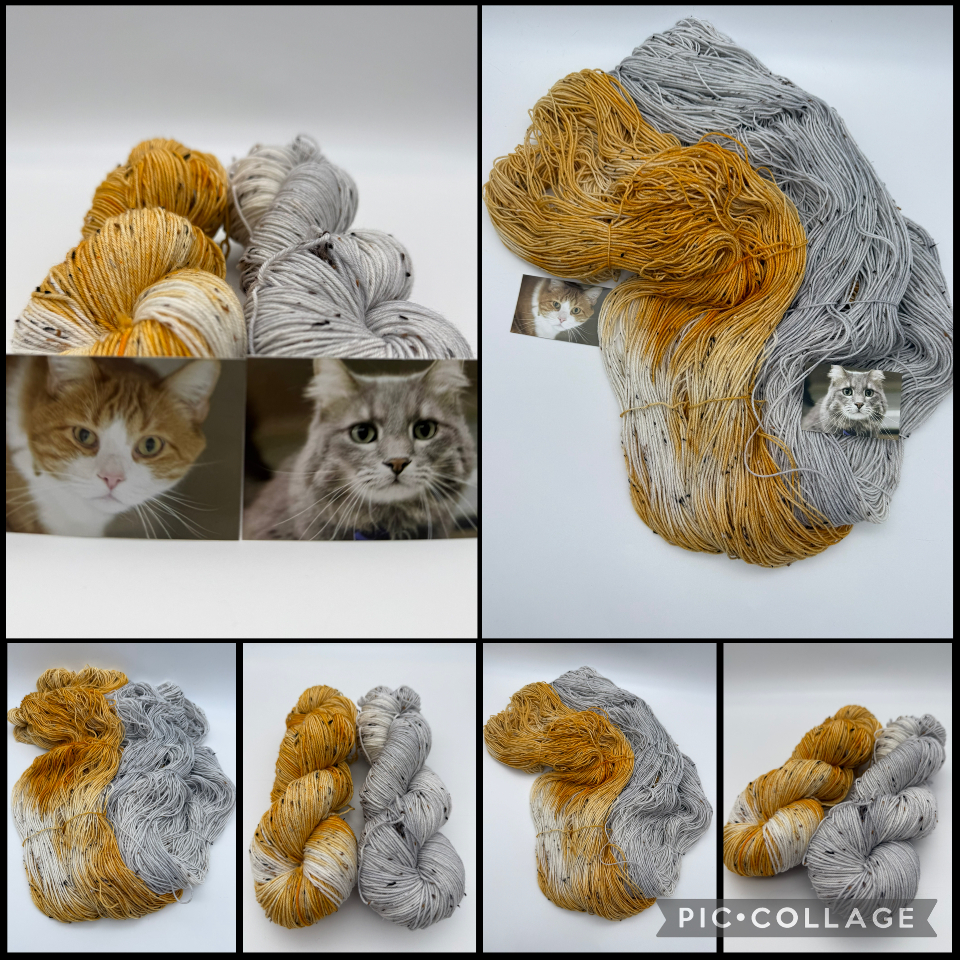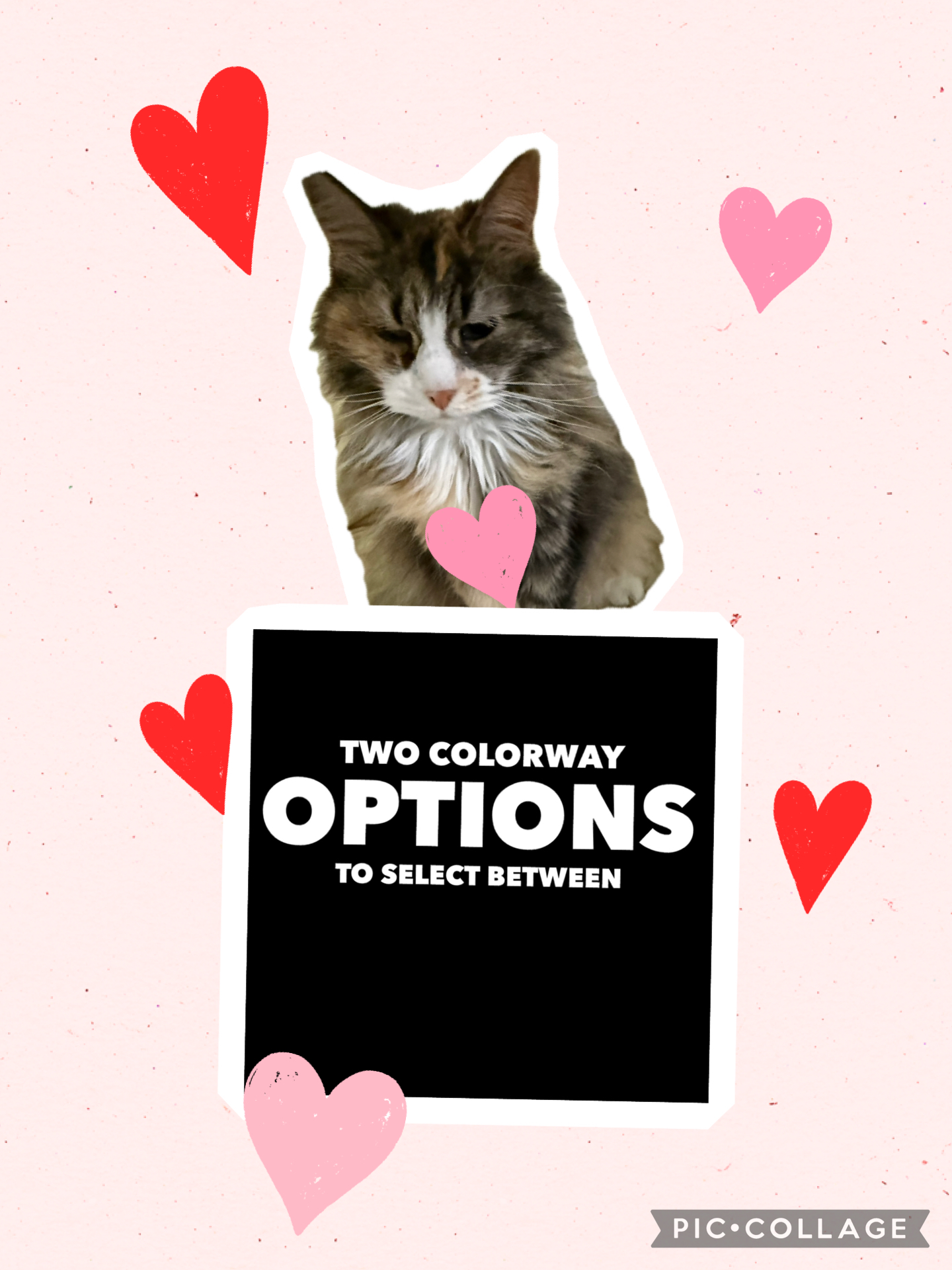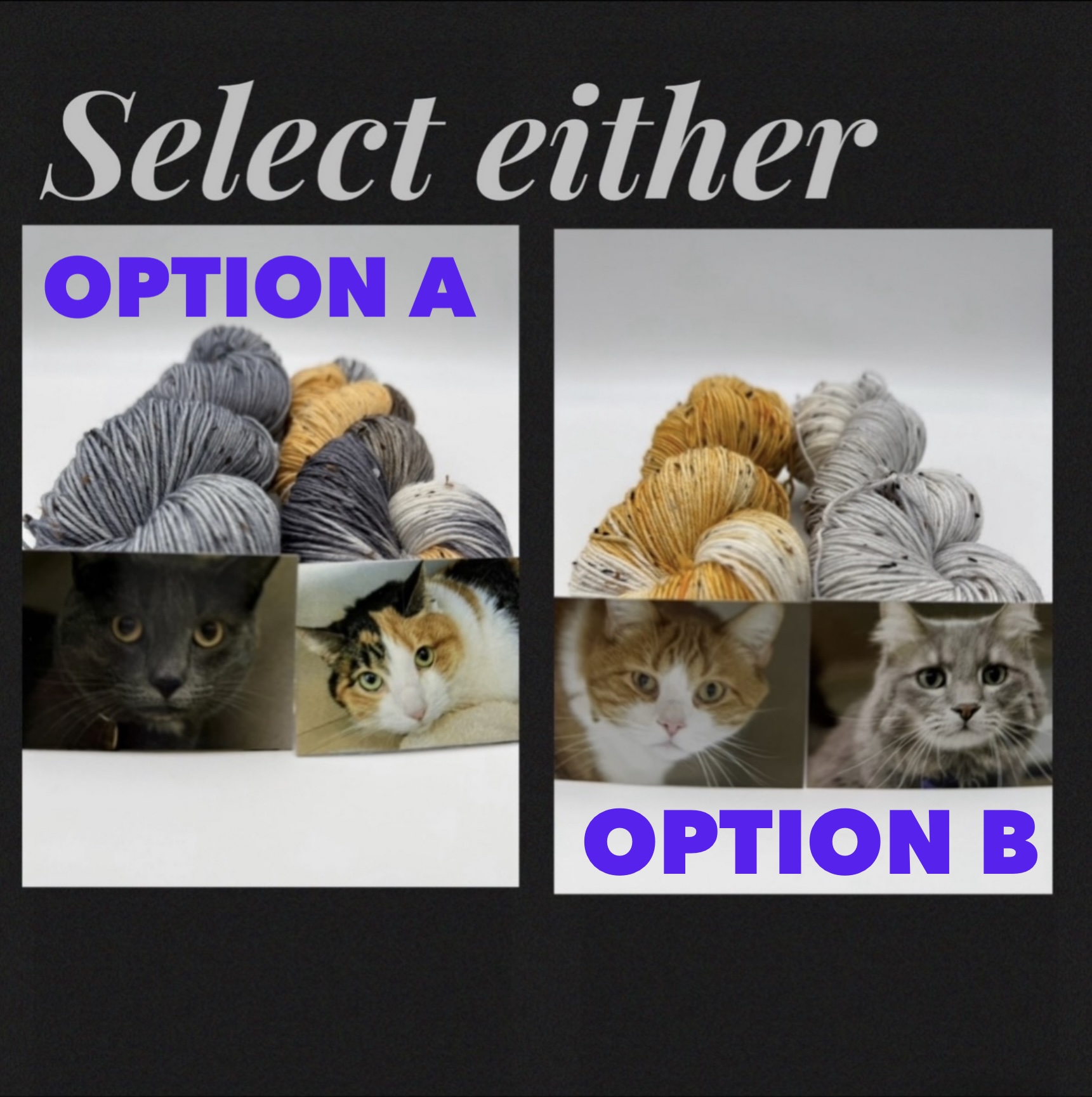 Choose your cuteness: Option A OR Option B, both adorable kitty inspirations dyed on the fingering tweed yarn base. This PREORDER combo will arrive with yarn option selected, set of stitch markers, a yarn cup, and sweet treats from my favorite local candy shop. All constructed and/or curated by myself to share some sweetness this February. I can use a little extra love. Plus, based on combo sales, we will be adding some treats to our donations for the kitties currently visiting Humane Colorado.