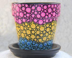 Handpainted Flower Pot Rainbow Dotted Terracotta Pot with Sa...