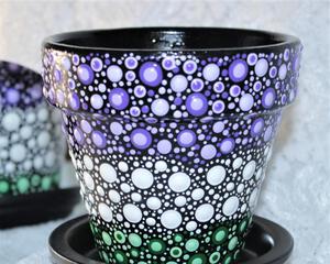 Purple Handpainted Flowerpot for Home or Garden Décor | Black...