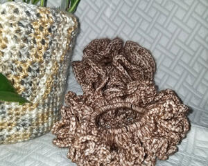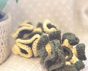 Green and Yellow Crocheted Ruffled Scrunchie Set