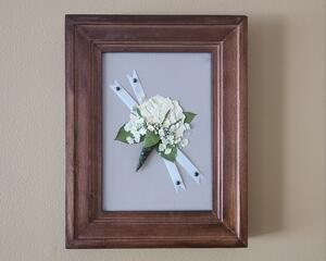 Your keepsake or memorial item can be created using any flowers from any event whether a wedding, funeral, mother’s day, prom or first date. This flower keepsake is made by hand-painting the background, on a high-quality stretched art canvas and professionally pressing and preparing your flowers to save and/or revive their natural, fresh color. For my CASUAL DESIGN I artistically form and secure your flowers in a natural/undefined design.