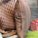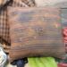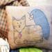 A pattern is hand embroidered and painted. It is then stitched to a backing fabric, stuffed and roughly stitched closed. A stiffener is added to the surface of the pillow and sometimes cinnamon is added for extra vintage appeal.