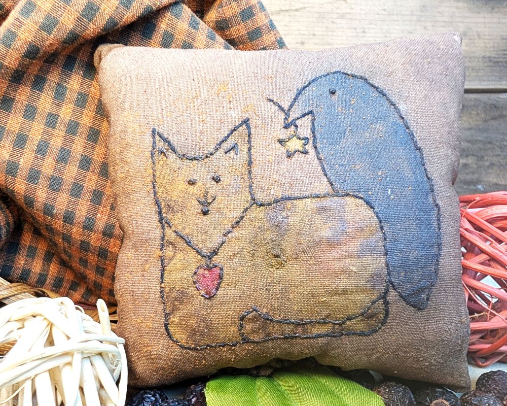 Add a touch of rustic charm to your home decor with this primitive 4-Inch cat and crow accent pillow. Perfect for layering on your tiered tray, this handcrafted piece is ideal for adding a cozy farmhouse feel to your space.