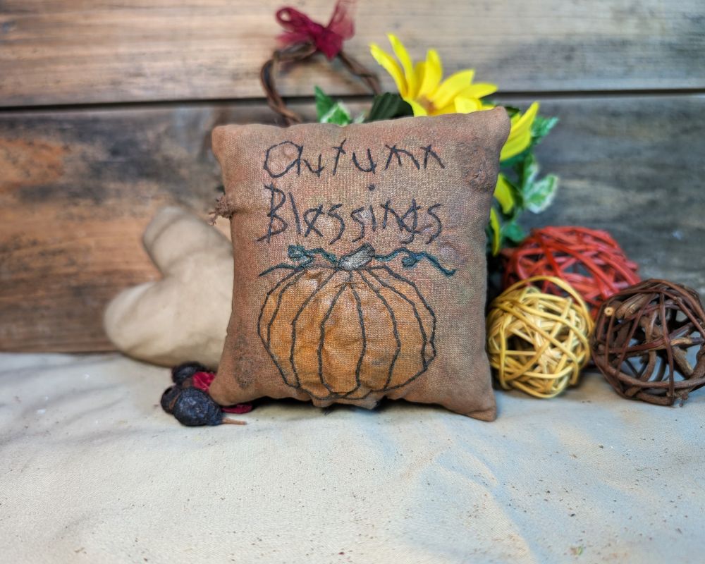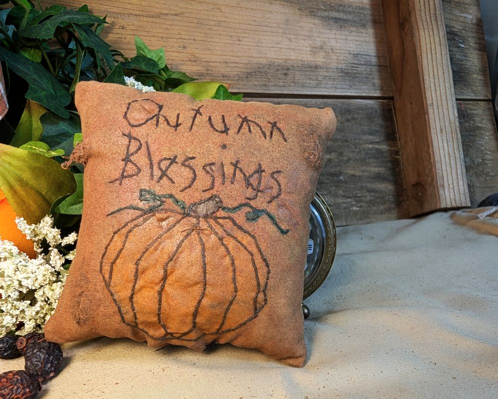 Primitive Rustic Autumn Blessings 4-Inch Decorative Pillow
