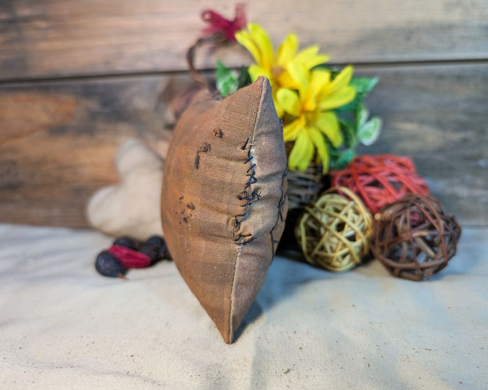 Autumn Blessings are coming your way with this rustic hand-embroidered and painted raggedy pumpkin 4-inch accent pillow. It has a coating of stiffener added to the surface to give it extra durability for covered outdoor fall decoration. It can be added to any decorating space in your home for an extra cozy vibe for the upcoming season.