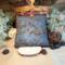Each pillow is created individually. The design is hand embroidered and painted on the front and then it is stitched to a coordinating fabric for the back. After stuffing it and stitching it closed, I stain it and then add stiffener as the last step to help keep the cinnamon from shedding and for durability.