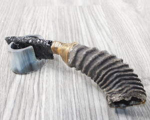 Goat Jaw Handle Obsidian Blade Ornamental Knife #14253 Mounta...