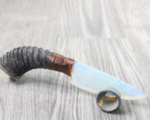 Elk Antler Handle Opalite Blade Ornamental Knife #2453 Mounta...