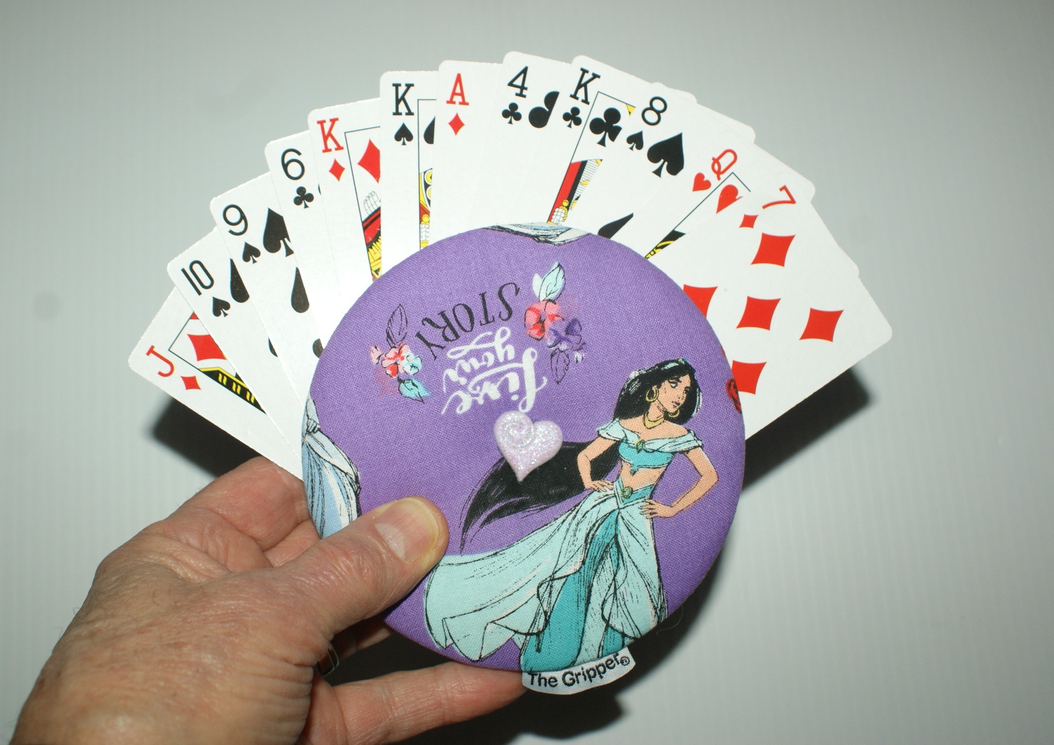 But while we were there I discovered that many retirees loved to play card games. However, I also learned that there were many who had problems holding the cards due to hand issues, way too many cards, etc. So I decided to set out to find a solution. After many trials and errors, I came up with a prototype which, after consulting with my wife (who has done quite a bit of sewing and quilting) I improved upon and set out to test my "invention" at craft fairs. To my surprise, they went over so well that I actually sold out at my first one! I quickly made more that evening and participated in another craft fair where I just about sold out again.