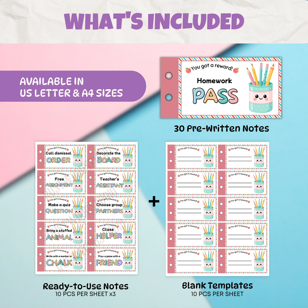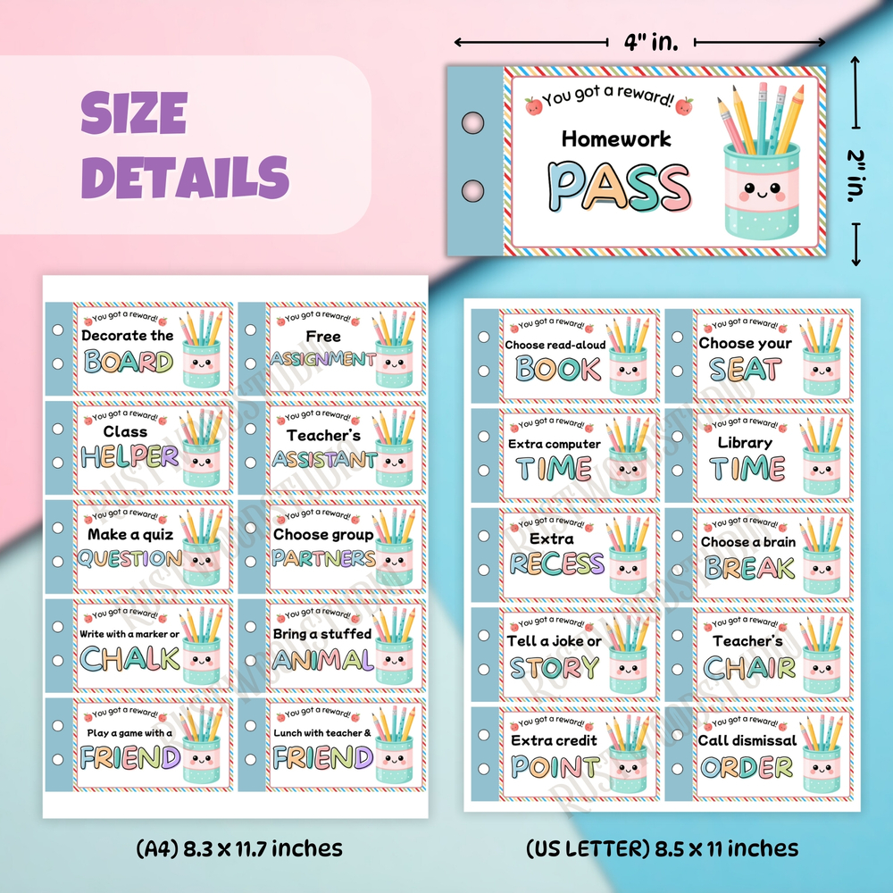 The coupons come in multiple formats (single or 10 per sheet in US Letter and A4), making them simple to print and use. Teachers can print as many as needed—at home, at school, or through a local printer—ensuring a budget-friendly and reusable resource all year long.