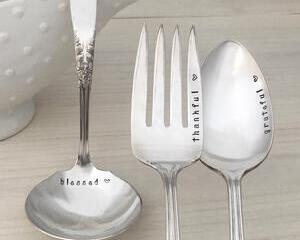 Each piece created by Prose & Polish is true vintage silverplate  - carefully curated through estate sales, antique shops, and auctions.  They are not new pieces, but rather old ones -- exhibiting the beauty of a life well lived.   Once home, they are carefully cleaned and polished by hand.   The sentiment is stamped letter by letter into the silver with a hammer and anvil.  Each piece is then polished again, tagged, ribboned, and repurposed for you. Any piece in the shop can be customized.  If there is something that you would like to change about a design in the shop - or if you have a design in mind that you would like to share with me,  please feel free to send me a message.   I would be very happy to work with you to create your own silver heirlooms.