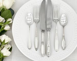 Each piece created by Prose & Polish is true vintage silverplate  - carefully curated through estate sales, antique shops, and auctions.  They are not new pieces, but rather old ones -- exhibiting the beauty of a life well lived.   Once home, they are carefully cleaned and polished by hand.   The sentiment is stamped letter by letter into the silver with a hammer and anvil.  Each piece is then polished again, tagged, ribboned, and repurposed for you. Any piece in the shop can be customized.  If there is something that you would like to change about a design in the shop - or if you have a design in mind that you would like to share with me,  please feel free to send me a message.   I would be very happy to work with you to create your own silver heirlooms.