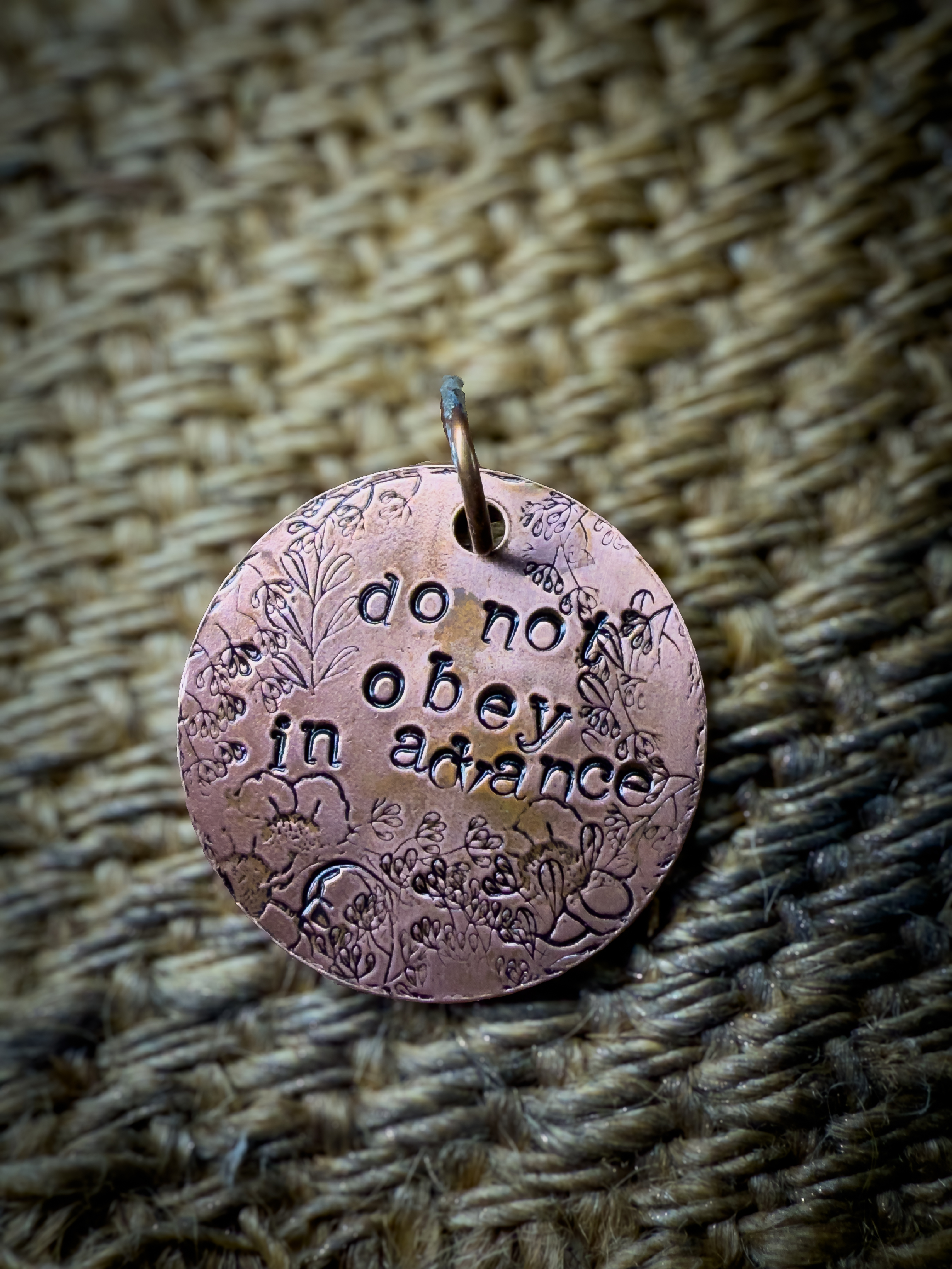 I create these medallions because art has always been a voice for the unheard, and right now, there is so much that needs to be said. Each piece is stamped with a conviction—RESIST, NO KINGS, TRANS RIGHTS, DISABILITY RIGHTS, FIGHT OLIGARCHY—transforming rage and hope into something solid you can carry.
