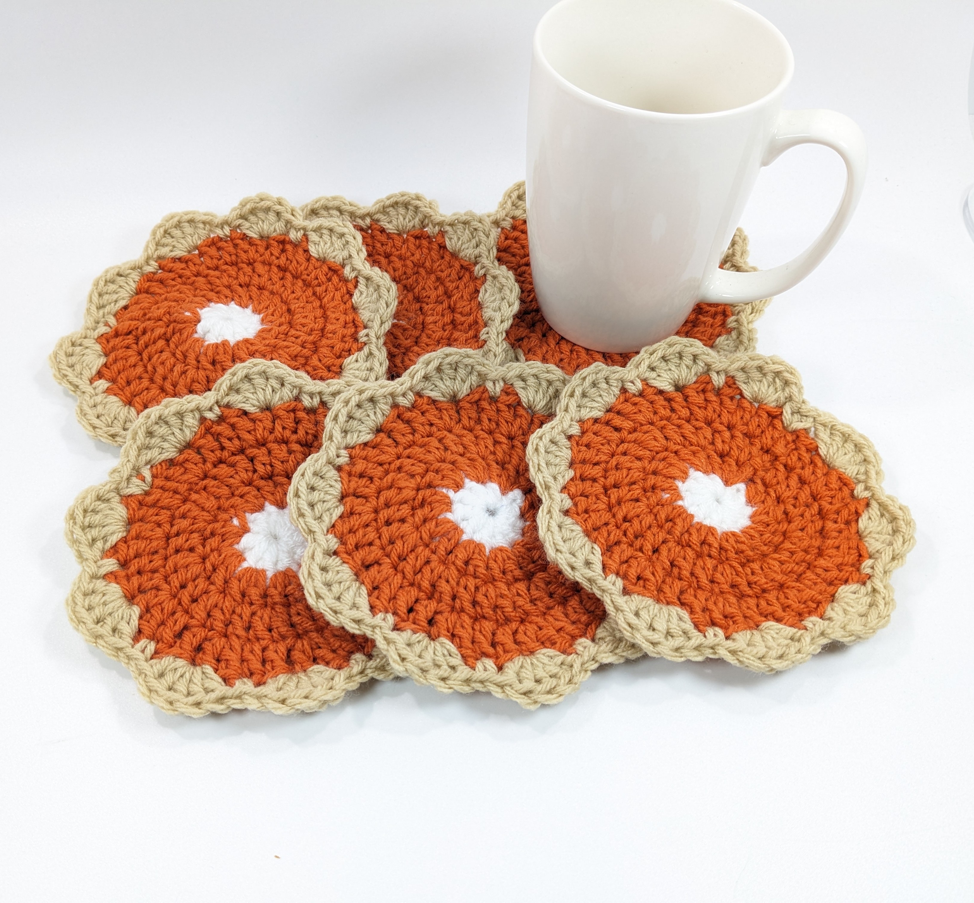 Also each Pumpkin Pie Coaster Set is hand crochet with acrylic yarn.