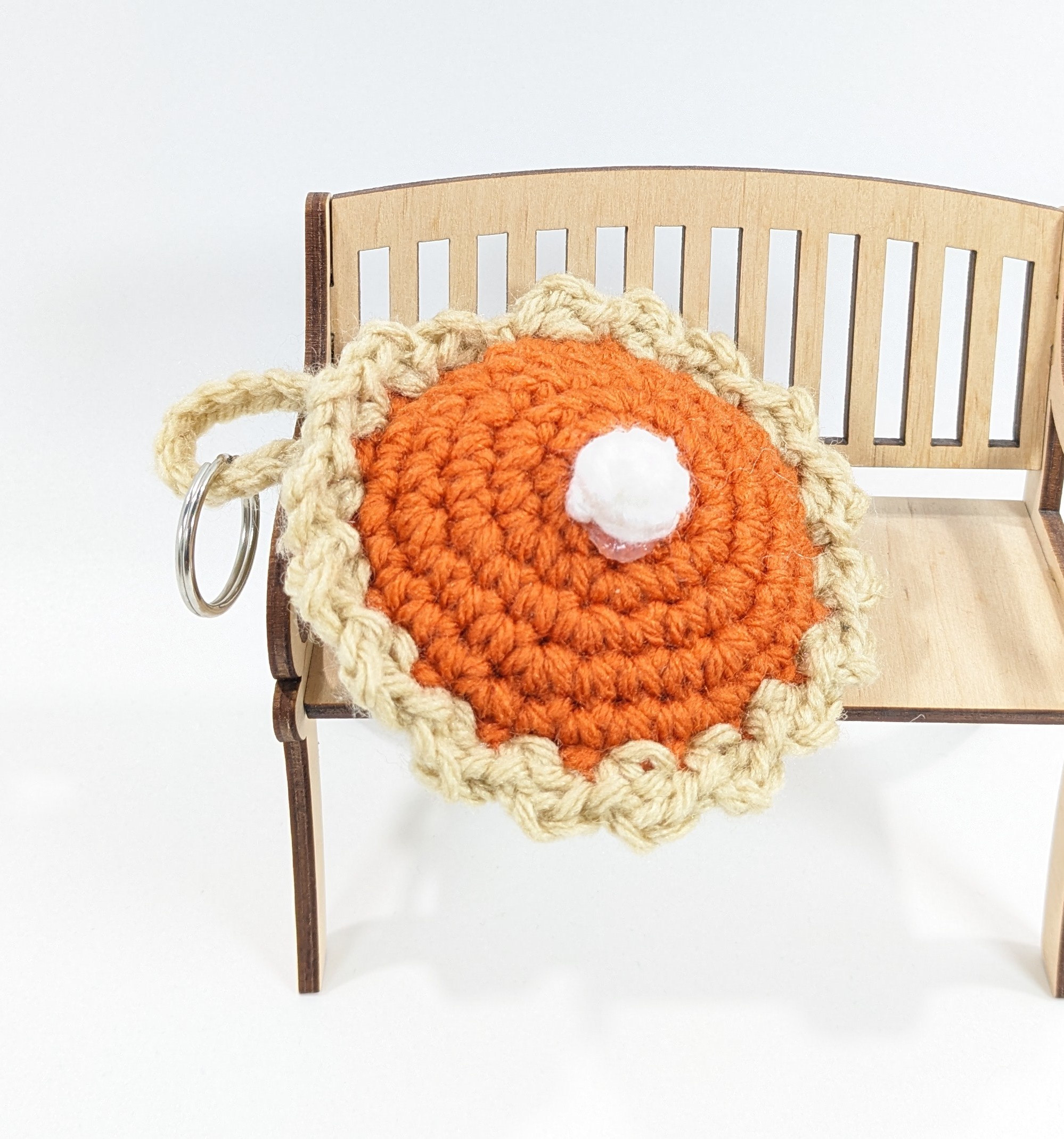 Also this cute Pumpkin Pie Plush Keyring is crochet with acrylic yarn and filled with a small amount of fiberfill. His mouth and eyes are made of felt and glued on.