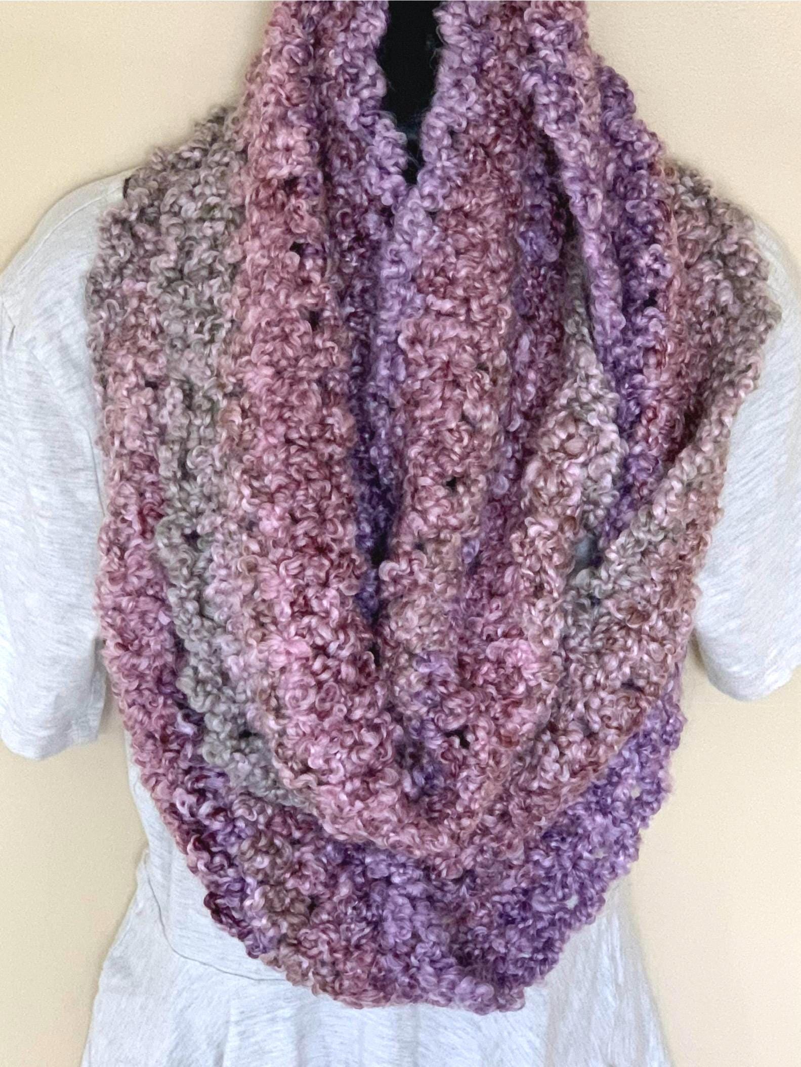This is an original infinity scarf that is extra wide as well as long. I designed my own pattern and made it by hand with rare Lion Brand Thick and Quick Homespun yarn. It's an extra special and unique find gift!