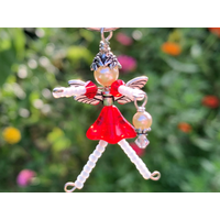 Handmade with love and care! Fairies are made by me using glass beads, metal beads and wire. Pliers are used to shape and wrap the metal wire arms and legs and then colorful glass seed beads are individually placed onto them. The arms, legs, skirt bead, wings, and hat are all placed onto a “wire backbone” to create the finished fairy.