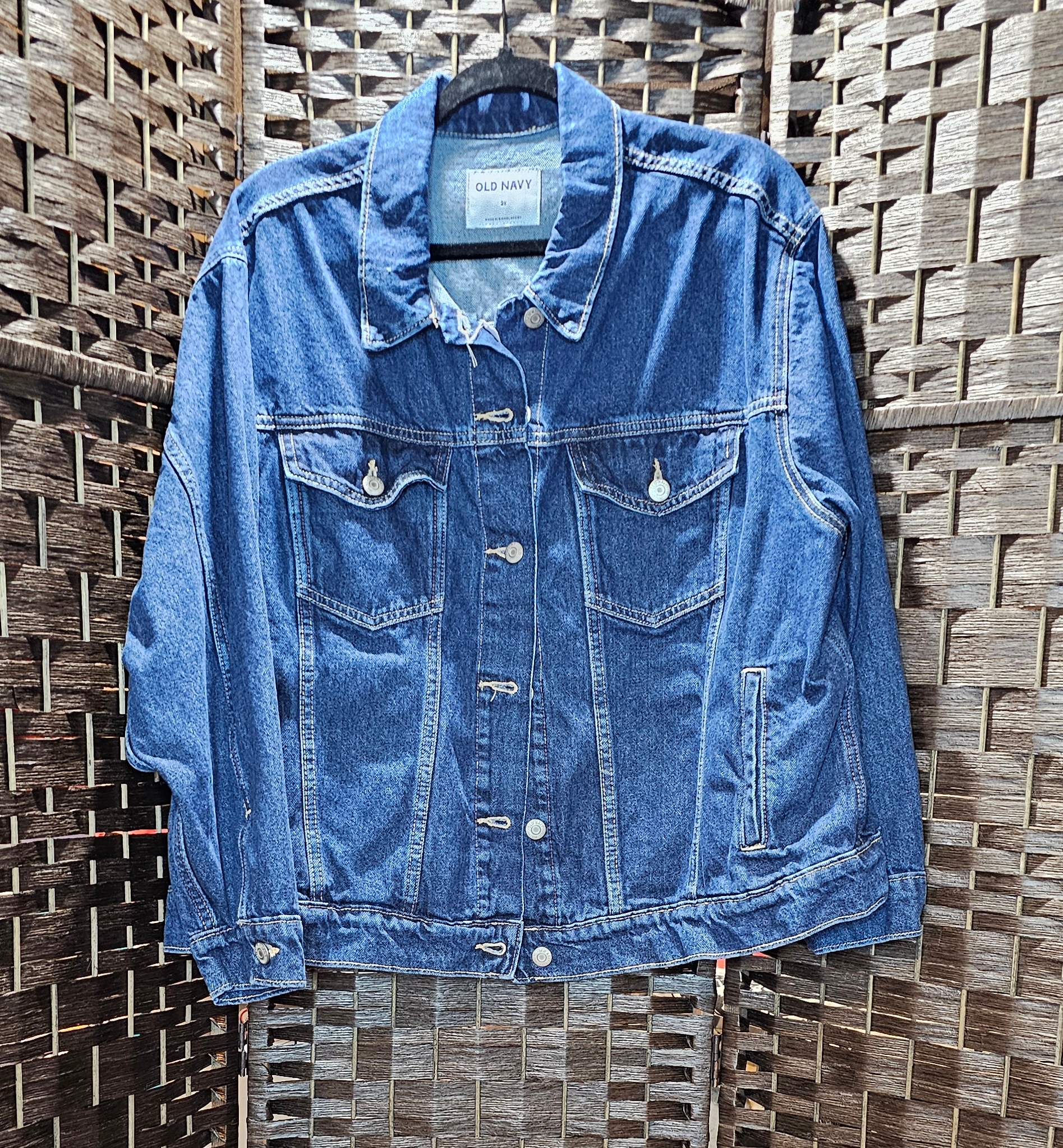 This is a new refashioned Old Navy jacket 2X that has a been Refashioned with a panel. 27 inches across pit to pit. 22 inches long from top of shoulder to bottom.