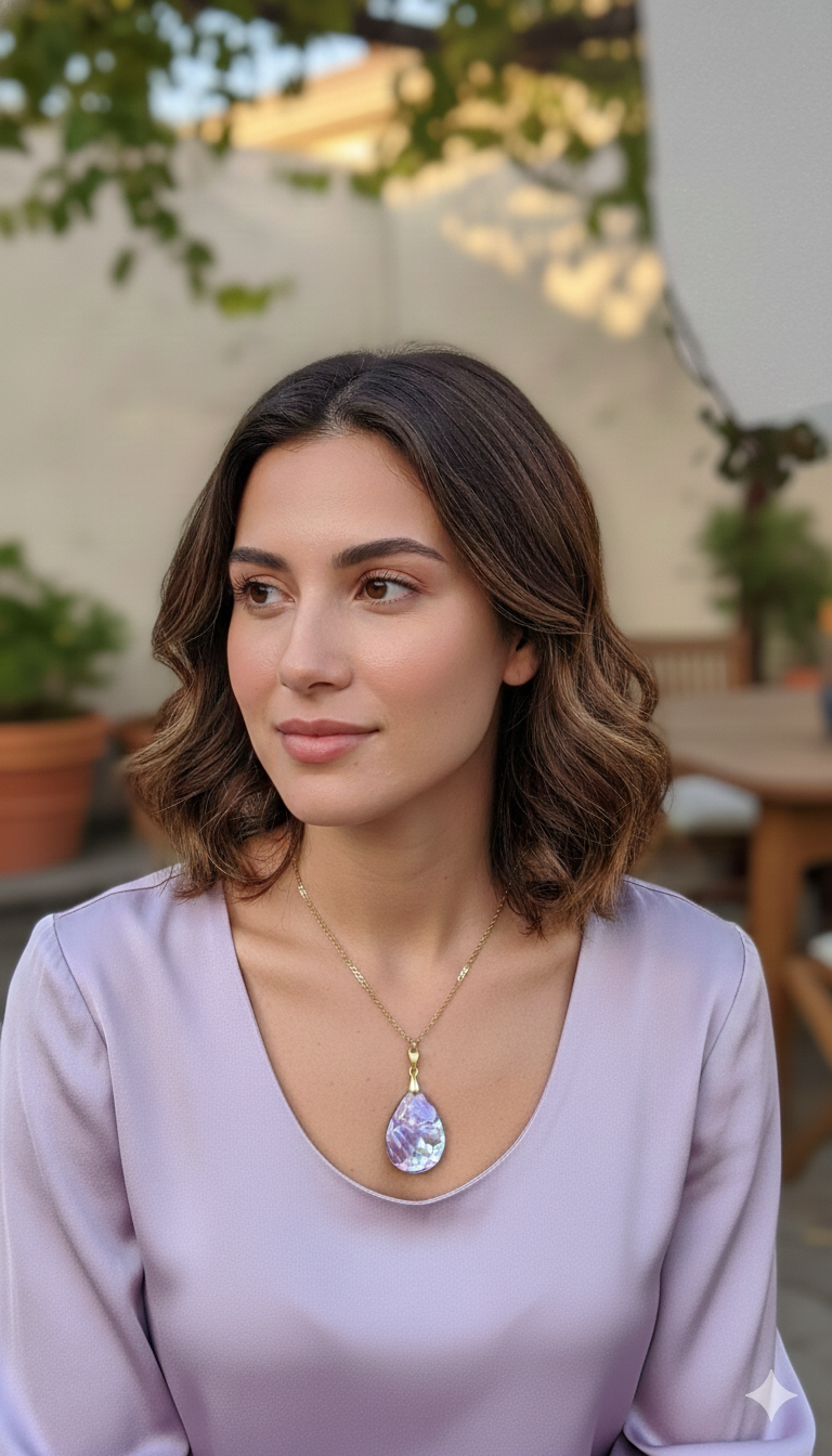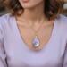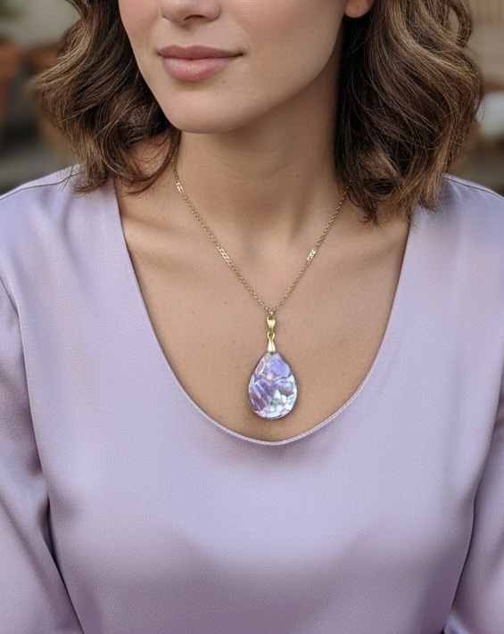 This pendant is made with purple-tinted abalone, set in teardrop-shaped clear resin. These delicate-looking shells are beautiful in their simplicity, and quite safe from damage inside their resin home. Perfect for your summer wardrobe, but works any time of the year. Stainless steel chain is included with the pendant.