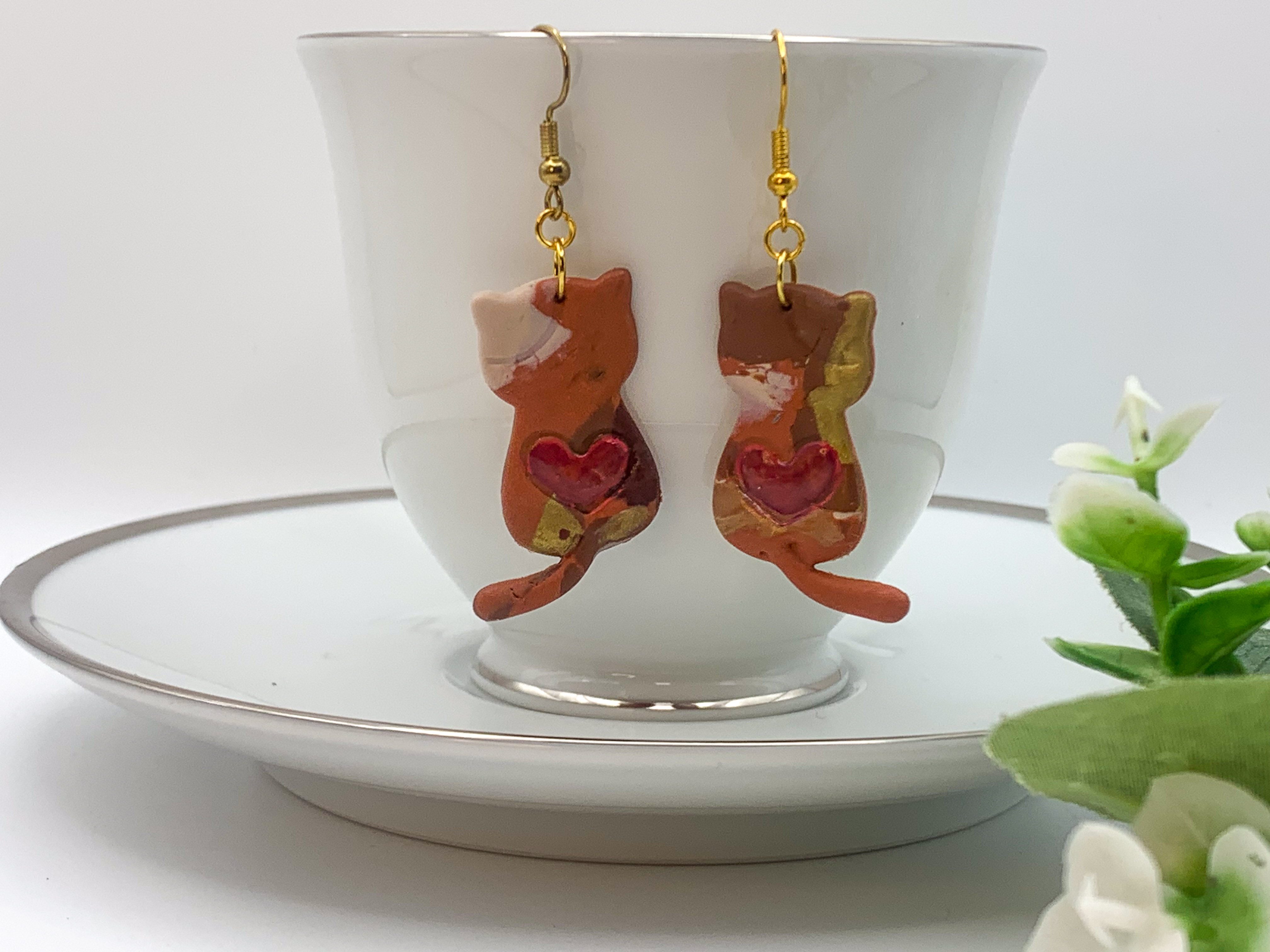 These marbled cat earrings feature a sweet heart detail, making them the ultimate gift for cat lovers!
